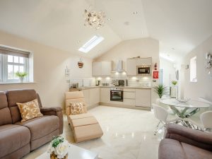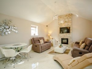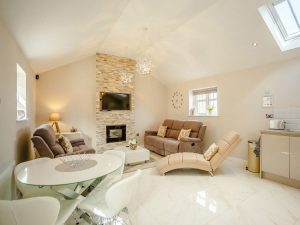 This ultimate luxury rural retreat is all on the ground floor with spacious open plan living space, with 2 double bedrooms, this beautiful cottage also has a private indoor hot tub, on-site sauna & ice plunge.